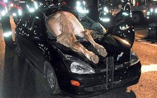 Άλογο έπεσε στο καπό του αυτοκινήτου!