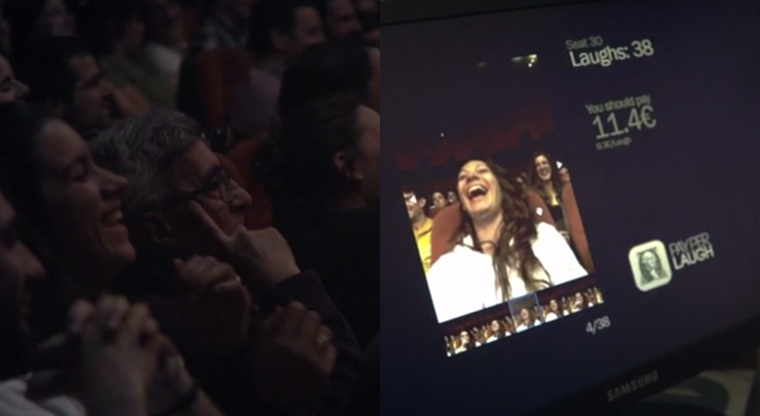Με τη χρήση της πιο σύγχρονης τεχνολογίας αναγνώρισης προσώπου, μικρές κάμερες μπροστά από κάθε θεατή στο Teatreneu club αναγνωρίζουν τις αντιδράσεις του προσώπου του και καταγράφουν τον αριθμό και την έντασή τους, για να ακολουθήσει η… τιμολόγηση.