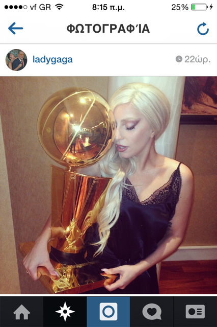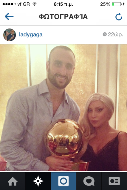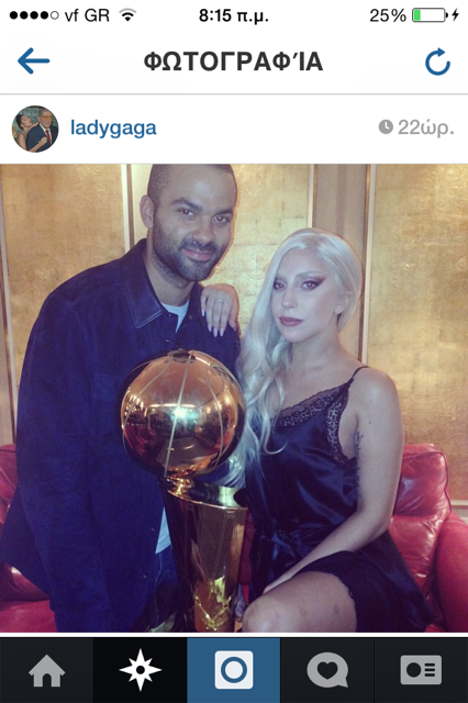 Μετά το παιχνίδι η Γκάγκα έτρεξε στην κυριολεξία στα αποδυτήρια ώστε να καταφέρει να βγάλει φωτογραφίες με τους αγαπημένους της παίκτες (Τόνι Πάρκερ και Μανού ΤζινόμπιλιManu) αλλά και με το τρόπαιο του πρωταθλητή, της οποίες και ανέβασε στον προσωπικό της λογαριασμό στο instagram.