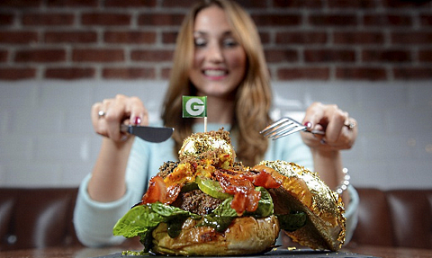Δεν τελειώσαμε. Το Glamburger σερβίρεται με αστακό ποσέ από τον Καναδά, ιρανικό σαφράν, σιρόπι σφενδάμου, με επικάλυψη μπέικον, χαβιάρι Βeluga και κρόκο από αυγό πάπιας, καλυμμένο με φύλλα χρυσού! Θέλετε κι άλλο; είναι ραντισμένο με σαμπάνια και λευκή τρούφα.