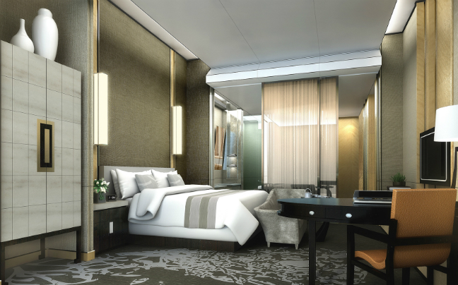 Όλα ξεκινούν από το εξωτερικό του σχέδιο, που μοιάζει με ανατέλλοντα ήλιο, και συμβολίζοντας την αναπτυσσόμενη οικονομία της Κίνας. Η είσοδος του έχει σχεδιαστεί ώστε να θυμίζει στόμα ψαριού, σύμβολο ευημερίας για τους κινέζους, ενώ από μια οπτική γωνία το ξενοδοχείο μοιάζει με χτένι, το οποίο αντιπροσωπεύει την τύχη στην κινεζική κουλτούρα. Η εξωτερική γυάλινη επιφάνεια καλύπτεται από περισσότερους από 10.000 υαλοπίνακες, με το πάνω τμήμα του κτηρίου να αντανακλά το χρώμα του ουρανού, το μεσαίο το βουνό Yanshan και το κάτω τμήμα να αντικατοπτρίζει την λίμνη.