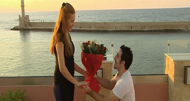 Μια πρωτότυπη και ταυτόχρονα εντυπωσιακή πρόταση γάμου, που θα έκανε και την πιο δύσκολη γυναίκα να πει το «ναι», έκανε ένας 23χρονος από την Κύπρο στο Ενετικό λιμάνι των Χανίων. Όχι, δεν έβαλε δαχτυλίδι στο ποτήρι της σαμπάνιας, ούτε γονάτισε απλά μπροστά σε κόσμο, αν εκεί πάει το μυαλό σας, αλλά η πρότασή του ήταν κυριολεκτικά «ουρανοκατέβατη».